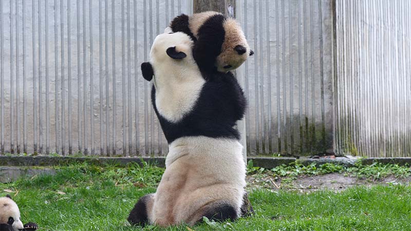 萌力全开!大熊猫带娃名场面